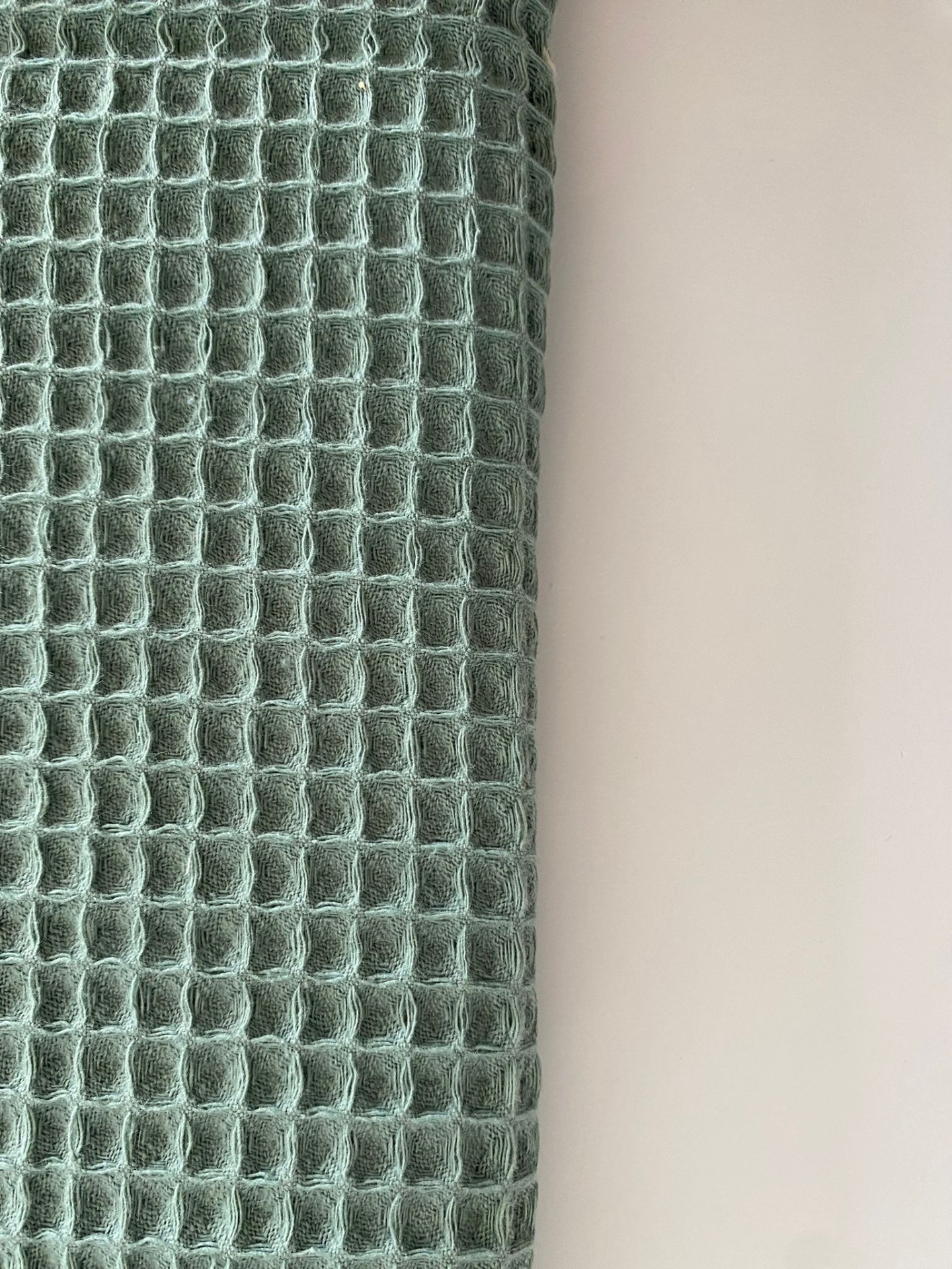 • Pano verde texturizado padrão waffle sobre superfície branca